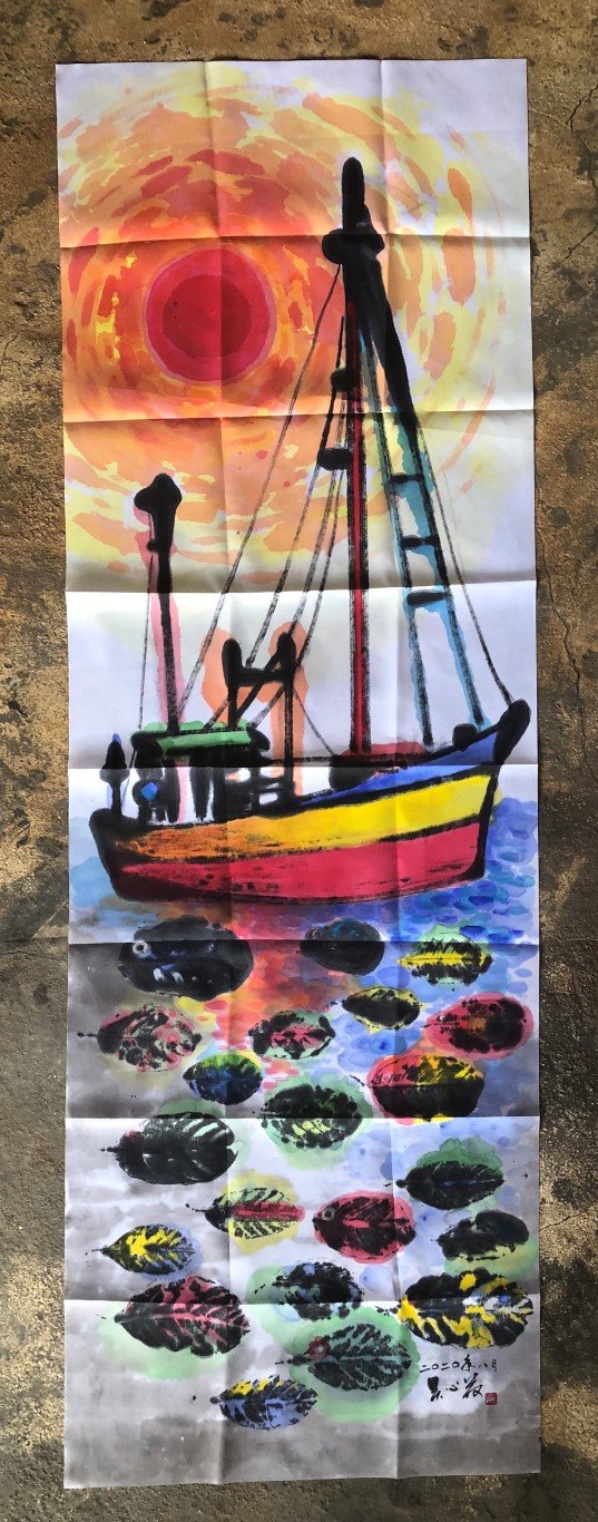 A007 吳心荷---魚船 彩墨60x180cm 2020
