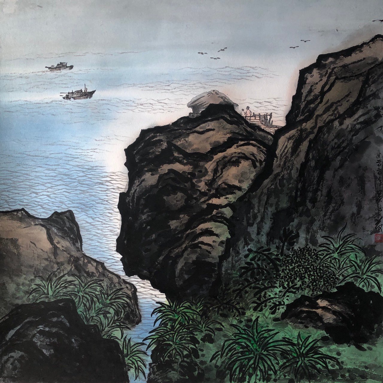 A009 吳心荷---看海 水墨紙本 70x70cm 2020